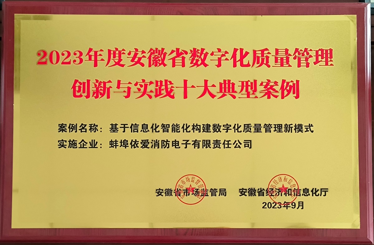 熱烈祝賀依愛(ài)消防入選安徽省數(shù)字化質(zhì)量管理創(chuàng)新與實(shí)踐十大案例