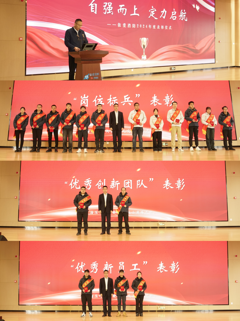 會議伊始,表彰依愛消防2024年度優(yōu)秀創(chuàng)新團隊,林玉璽副總經(jīng)理宣讀表彰決定,張曉雙總經(jīng)理為崗位標(biāo)兵、優(yōu)秀創(chuàng)新團隊代表和優(yōu)秀新員工頒發(fā)榮譽證書并合影留念。先進個人代表馬洪馳、杜明利、郭云鳳分別做交流發(fā)言。