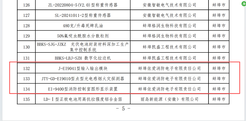 近日,安徽省工業(yè)和信息化廳正式公示了《安徽省新產(chǎn)品(2025年第三批)擬確認(rèn)名單》。經(jīng)過各地推薦、專家評審和廳長辦公會(huì)審議,蚌埠依愛消防電子有限責(zé)任公司的J-EI9041型輸入輸出模塊、JTY-GD-EI9010型點(diǎn)型光電感煙火災(zāi)探測器和EI-9400型消防控制室圖形顯示裝置三項(xiàng)創(chuàng)新產(chǎn)品成功入選,標(biāo)志著公司在智慧消防與電子技術(shù)領(lǐng)域的研發(fā)實(shí)力再獲權(quán)威認(rèn)可。